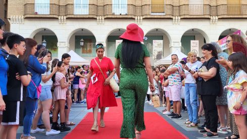 La pasarela en la plaza López Allué ha contado con un pase especial de es prendas “rebonitizadas”, que se ha unido al central de la tienda Moda-re. “La traemos a la plaza porque la gente no nos conoce o no tiene el hábito de consumir nuestros productos”, ha explicado.