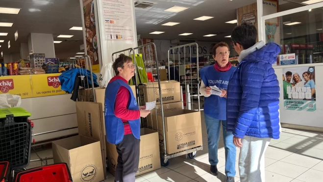 En la mañana de este sábado 8, la actividad era constante en los puntos de recogida. En el local de Supermercados Altoaragón de la avenida Ramón y Cajal, Pilar Castro e Isabel Alcaine, voluntarias del Banco de Alimentos, se mostraban satisfechas con la respuesta ciudadana. “Estamos contentas porque entra gente continuamente y deja lo que puede”, comentaba Pilar, y explicaba que “algunos prefieren donar dinero o ya han colaborado en otros establecimientos”.