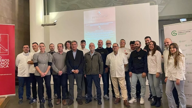 La Sala Saura de la Diputación Provincial de Huesca fue este miércoles el escenario de la presentación del segundo turrón solidario, una iniciativa solidaria liderada por el Gremio de Pasteleros Artesanos de Huesca. Este dulce, elaborado por José Antonio García, de la Pastelería Ascaso, busca unir tradición, creatividad y solidaridad.