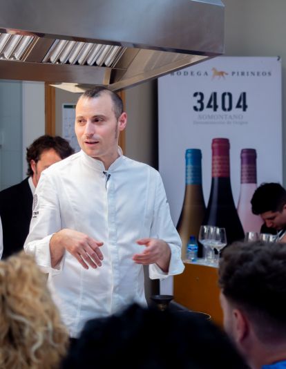 El chef gurretano Cristian Palacio, de Gente Rara de Zaragoza, una de las grandes referencias actuales de la gastronomía en Aragón, pronunció y practicó en los talleres “Huesca, la Magia de la Gastronomía” una ponencia magnífica basada en las sensaciones producidas por el colágeno y las texturas melosas. Se celebró en la Escuela de Hostelería San Lorenzo bajo la organización de la Asociación de Hostelería y Turismo de la provincia de Huesca.