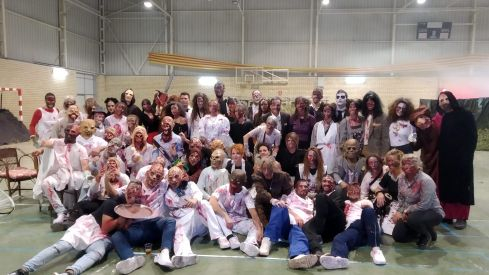 Cual si fuera un precedente de "El resplandor", la cara alienada de Jack Nicholson era una broma al lado de los botones, recepcionistas, camareros, servicios de habitaciones, mantenimiento y demás oficios cuyos aspectos eran auténticamente estremecedores. La recreación resultó fascinante, gracias al trabajo de sesenta voluntarios de la asociación El Revoltijo y la colaboración consistorial. Una excelente interpretación de guías que, en el pabellón, iban conduciendo a los mil asistentes (se agotaron de manera rapidísima las entradas) en pases ordenados por cada una de las estancias, por el jardín, por el cementerio e incluso por el monasterio aledaño. Seres abrasados, muertos vivientes, se conectaban con los visitantes en el lenguaje zombi, y todo seducía por su atmósfera tétrica.