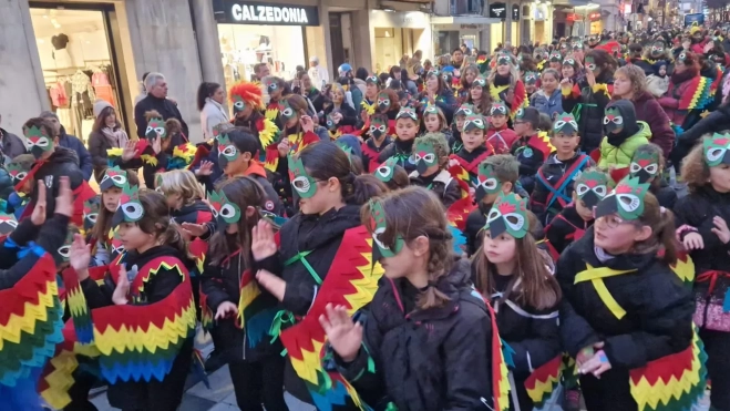 Huesca ha vibrado con la celebración del esperado carnaval, en el que han participado alrededor de 4.100 personas, inundando las calles de alegría, música y color. El desfile se ha nutrido de una gran diversidad de propuestas y disfraces, que en algunos casos han logrado sorprender a los cientos de oscenses agolpados en las aceras.