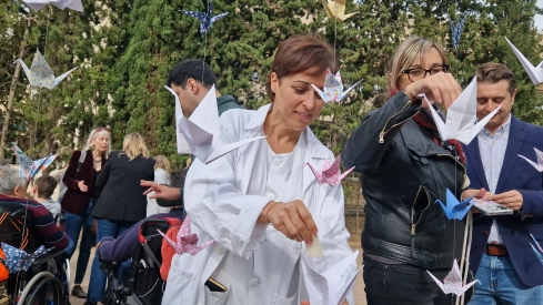 Para esta ocasión, el equipo de Arte Cuidados ha creado una instalación artística de grullas de papel, un símbolo elegido con profundo significado. "Las grullas son aves migratorias que nos visitan cada año por estas fechas, y algunas se quedan en nuestra tierra a pasar el invierno", ha explicado Marina, subrayando que son "fuertes y resistentes", capaces de volar a gran altura. “Las grullas vuelan en grupo, ayudándose unas a otras” y se turnan para liderar el vuelo, el puesto que más esfuerzo exige, mientras las que van detrás animan a las de delante con sus característicos cantos. Además, “cuando una grulla está herida, enferma o cansada, otras salen de la formación para acompañarla y protegerla hasta que esté lista para volar de nuevo”.