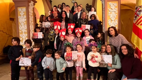 Los ganadores del concurso de disfraces y comparsas del Carnaval 2025 de Huesca han recogido este martes su premio a la creatividad e imaginación en un acto en el Colegio de Santiago, que ha contado con la presencia de la alcaldesa de Huesca, Lorena Orduna, la concejala de Fiestas, Nuria Mur, el concejal de Infancia y Juventud, Guillermo Gómez, y los concejales socialistas Fernando Sarasa y Ramón Lasaosa.