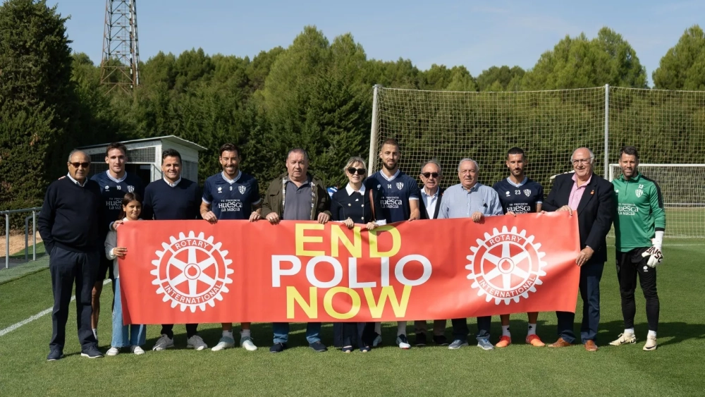 El Rotary Club de Huesca ha encontrado este 24 de octubre, Día Mundial de la Poliomielitis, una compañía excepcional para pregonar la importancia de la gran acción altruista que define a este movimiento mundial: la erradicación de esta enfermedad a través de campañas permanentes que han conseguido una mejora de la situación con resultados excepcionales.