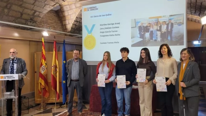 El IES Sierra de San Quílez de Binéfar se ha coronado campeón en la modalidad de centros en la XV Olimpiada de Geografía de Aragón, con un equipo formado por Martina Garriga, Jara Jiménez, Hugo García, Tougoune Keita y Carmen Tornos. La entrega de premios ha tenido lugar este domingo en un acto celebrado en la Sala Hermanos Bayeu del Gobierno de Aragón.