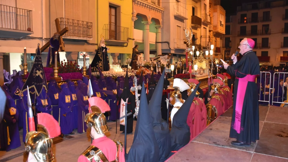 En este recorrido, las cofradías han discurrido con la Verdad por San José de Calasanz, Plaza de Aragón, Paseo del Coso, General Ricardos, Plaza de la Diputación y Argensola hasta desembocar en la confluencia de todos en la Plaza del Mercado. Ahí, todos son conscientes de que Jesús ha entregado su vida por todos. Oración general con el obispo, Ángel Pérez Pueyo, poniendo el colofón de gratitud y la expectativa de una vida plena y eterna. Tal determinación, magnanimidad sin parangón, certifica que la Semana Santa de Barbastro sigue dando pasos en el camino hacia el triunfo de la vida sobre la muerte. Con solelmnidad. Con brillantez. Con pulcritud. Porque todo lo merecen el Cristo y la Virgen.