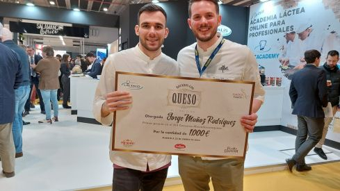 Los jóvenes cocineros Jorge Muñoz y Cristian Mor de la Era de los Nogales de Sabiñánigo se han proclamado triunfadores del XIII Concurso Bocados con Queso que patrocina Lactalis Foodservice Iberia dentro de Madrid Fusión, que se ha abierto esta mañana de lunes bajo el eslogan "Sin límites". Una mañana con intenso sabor aragonés con la presencia del vicepresidente Aliaga y con un taller de trufa con cuatro cocineros de nuestra comunidad.