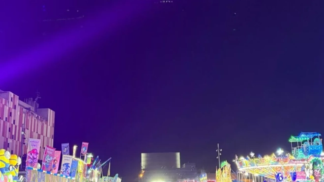 Que las ferias de Huesca tienen un punto seductor de ilusión resulta evidente, y es que las atracciones invitan a la imaginación. Pero en este sábado de ferias postlaurentinas, un fenómeno llamó la atención de una buena lectora nuestra, con extraordinaria vista por lo que se ve y un buen teléfono móvil para captarlo: una serie de luces alineadas sobre el recinto y sobre el Palacio de Congresos.