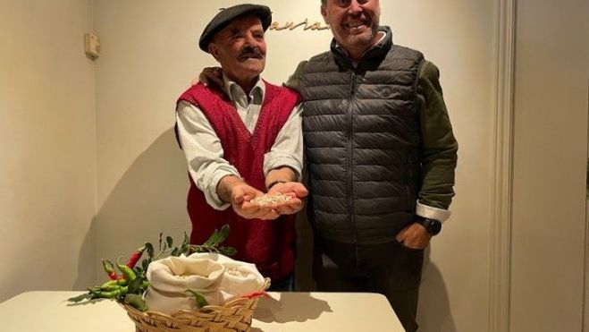 Previo a la comida de presentación, Carlos Valero preparó una serie de actividades como fue poder conocer a Manolo Eito Garcés, uno de los últimos agricultores que cultivan el Boliche Embún, un personaje maravilloso tallado del mismo material que las montañas del Pirineo y que gracias a su perseverancia y pasión, junto al de otro puñado de irreductibles agricultores de la zona, podemos continuar disfrutando del boliche en cualquiera de sus modalidades, blanco, amarillo, ‘colorao’ o la pinta o de careta (conocida en Zaragoza como el de la Pilarica).