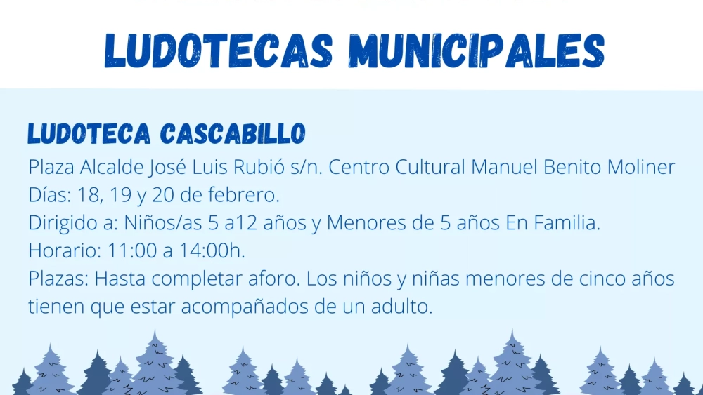 Con motivo de la Semana Blanca, las ludotecas municipales Cascabillo y Candeleta han organizado, los días 18, 19 y 20 de febrero, una serie de actividades dirigidas a los niños y niñas de 5 a 12 años, así como a menores de 5 acompañados de un adulto.
