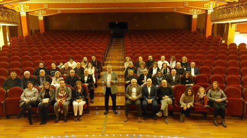 Teresa Pueyo glosaba la figura de Manuel Pérez y los cien años de historia del Teatro Olimpia, en un triple galardón cuyo trofeo lleva el nombre y la inspiración del añorado historiador Julio Brioso y Mairal. Recordaba la profesora de música y pianista la historia del gran dinamizador cultural de Huesca desde 1925 en que fue inaugurado por la Compañía del Teatro Real de Madrid y el tenor Miguel Fleta. Ochenta años de centro neurálgico de la sociedad oscense hasta que, en 2005, inició la remodelación y fue estrenado en 2008 en una ambiciosa obra. La puesta de largo fue presidida por la Infanta Elena de Borbón, que escuchó junto a un teatro repleto a la gran Teresa Berganza.