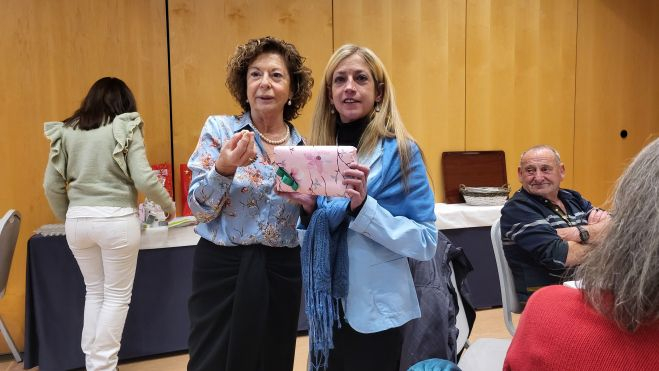 La Junta Directiva, reunida el pasado 29 de septiembre, acordó por unanimidad que fuera ella la destinataria de este tributo, según explicaron el presidente, Fernando Oliván, y la secretaria, Lucía Oliván. "Y es aquí en nuestra asociación, donde nos beneficiamos, y a la vez disfrutamos de tus técnicas. María Ángeles, nos enseñas a meditar, a la calma en momentos difíciles, a abordar los miedos ante situaciones complejas y de crisis, a reducir el estrés y la ansiedad", le dijo el presidente.