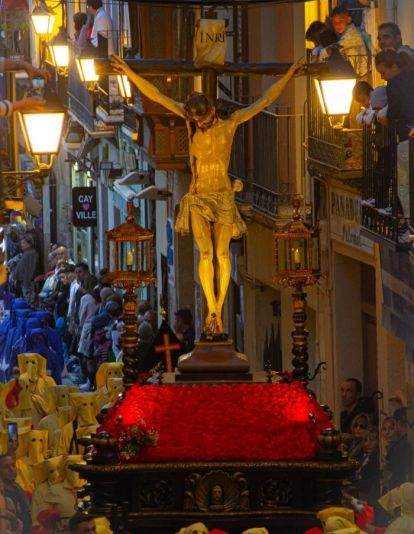 La ganadora refleja la belleza del Cristo crucificado portado por los costaleros de la Cofradía, con unas lunes hermosas en plena procesión. El segundo premio ha sido para Luis Carlos Pascual Pueyo, una imaagen desde abajo en la que se aprecia tras el primer plano de los portadores y del Cristo la Catedral iluminada.