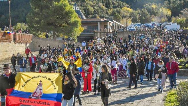 La imagen de la Virgen del Quinche se ha trasladado a la escalinata en el exterior del templo y ha presidido varias danzas tradicionales ecuatorianas bailadas en su honor por grupos folclóricos como Los Yumbos, de Barcelona, Renacer andino, los Payasitos goza, goza y Abriendo caminos, de Zaragoza, y Nuevo amanecer, de Lérida. Los actos han sido amenizados por la Banda de la Virgen del Quinche de Barcelona.