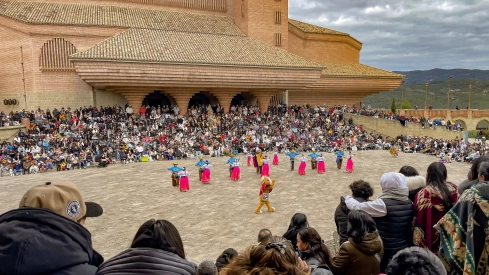 La imagen de la Virgen ecuatoriana se ha trasladado a la escalinata en el exterior del templo y ha presidido varias danzas tradicionales acompañadas por la banda de música Los Elegidos y presentadas por el animador Joe. Han sido bailadas en honor de Nuestra Señora por 11 grupos folclóricos: Negritos sabrosos, Saihua y Payasitos de Roquetas, de Barcelona, Abriendo caminos, Sueño y pasión, Payasitos Goza Goza y Sayani, de Zaragoza, Euroamérica y Nuevo Amanecer, de Lleida, Juventud y vida, de Huesca y Herencia ecuatoriana, de Soria.