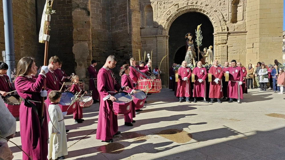 La Santa Iglesia Catedral ha sido el punto de partida del desfile procesional a las once de la mañana, en el que el paso de la Entrada de Jesús en Jerusalén ha recorrido las principales calles del centro de la ciudad. Mañana soleada, aunque marcada por un ambiente algo desapacible debido a las frías y fuertes rachas de viento que se han dejado sentir en algunos tramos del recorrido, lo que ha obligado a acelerar ligeramente el ritmo de la procesión en su tramo final, poco antes de llegar a la seo barbastrense.