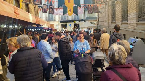 Tras el inmejorable inicio del 19 Mercado Medieval de Asapme Huesca, que el viernes reunió a cientos de personas en la plaza López Allué y las calles aledañas, este sábado se sigue una tónica parecida, con mucha animación en el medio centenar de puestos procedentes de diversas ciudades españolas repartidos por este espacio, espectáculos de calle, mucha música y colorido, actividad en los puestos de comida y refrescos y número específicos para niños con una excelente acogida.