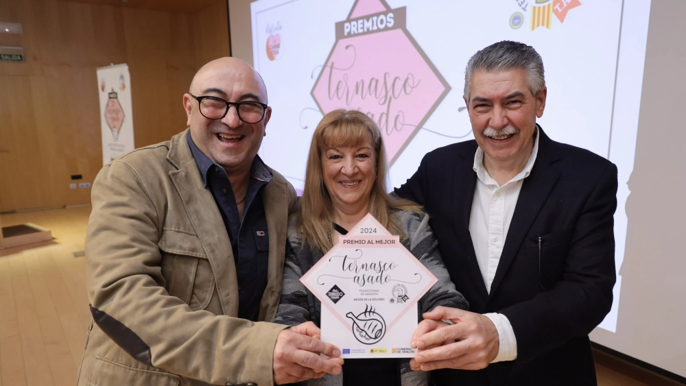 Mejor Ternasco asado de Aragón: El Mesón de la Dolores, de Calatayud, por su clásica “paletilla asada de Ternasco de Aragón IGP con patatas panadera”. Han recogido el premio Restituto Sánchez y Bernardo Rodes, de manos de Juan José Orriés, director general de Innovación y Promoción del Gobierno de Aragón.