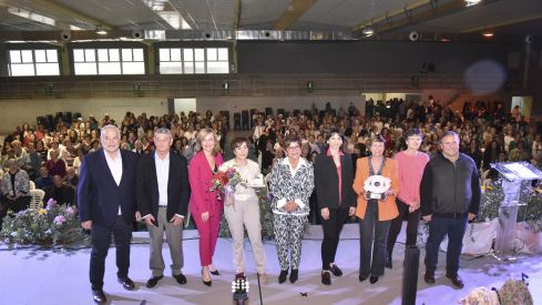Pilar Alegría, ministra de Educación y Formación Profesional, ha entregado esta tarde en Lanaja el premio Gabardera a Inmaculada Val ante más de 600 personas llegadas desde distintas localidades de Los Monegros, junto a Ana Belén González, presidenta de la Coordinadora de Asociaciones de Mujeres de Los Monegros, y la vicepresidenta de la Diputación Provincial de Huesca, Elisa Sancho. Previamente, el presidente del CEDER Monegros, José Manuel Penella, ha entregado esta tarde otro galardón a Olga Brosed, responsable del Proyecto Concilia desde sus inicios, en reconocimiento a su labor en favor de la igualdad y de la mujer del medio rural.