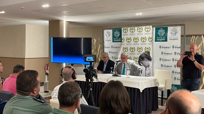 Este miércoles se han celebrado las XIX Conferencias Taurinas que ha tenido como protagonista a Miguel Ángel Moncholi, reconocido periodista, autor de la ponencia "Los Toros, liturgia, reto y religión. El protocolo taurino". El acto ha tenido lugar en una de las salas del Hotel Pedro I de Aragón de Huesca que, como es habitual, se ha llenado. Al término de la ponencia, Moisés Fraile, ganadero de El Pilar, ha recogido el premio de la XIII edición al toro más bravo de la Feria de La Albahaca 2023.