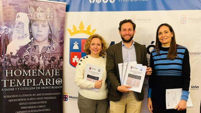 “Llevamos casi un año de trabajo elaborando una completa memoria en la que se recogen los méritos que Monzón y nuestra fiesta templaria han acumulado durante estos años para conseguir su declaración de Interés Turístico Nacional”, ha señalado el alcalde de Monzón, Isaac Claver, acompañado de la concejala de Cultura y Turismo, Marta Montaner.