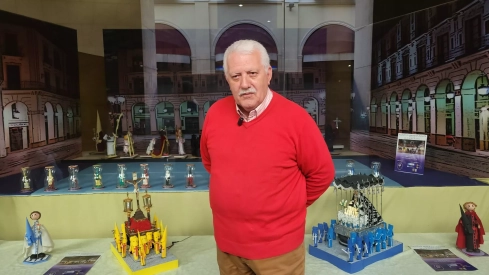 El fotógrafo y artista quería hacer este homenaje al ciclo oscense que tanto ha fotografiado, cuidado y querido. "Están todas las cofradías e incluso los personajes que salen en el Santo Entierro: las sibilas, los ministriles, las Siete Palabras, la Verónica que sale en persona. Están todos los personajes y cofradías de Viernes Santo. Faltan todos los pasos a excepción de los dos presentes, el Cristo del Perdón y La Dolorosa. Los otros no me ha dado tiempo a hacerlos, pero con el tiempo y una caña... pescador".