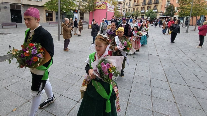 Ataviados con indumentaria aragonesa y portando flores, los oferentes han iniciaron el recorrido por la calle Lanuza y el Coso Bajo, acompañados por las jotas de la Agrupación Santa Cecilia, al que se han sumado un buen número de vecinos.