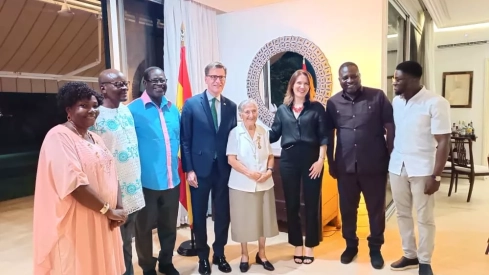 Cruz de Oficial de la Orden de Isabel la Católica por su compromiso social y por su vida ejemplar en el servicio a los niños. María Teresa Añaños Colón, salesiana, antigua alumna del colegio de Santa Rosa, recogió el 16 de abril de manos del embajador de España en Costa de Marfil, Rafael Soriano Ortiz, el reconocimiento del rey Felipe VI. Sesenta años de religiosa, 43 de ellos de misionera en África, de los que 26 ha servido en Costa de Marfil, 12 en Madagascar, el resto en Togo, Mali, Burkina Faso, países a los que ha entregado su mensaje, "Dios nos ama", siempre con la visión de la esperanza.
