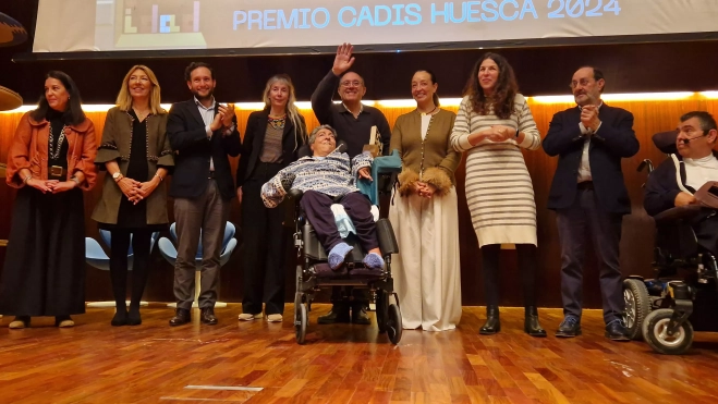 El salón de actos de la Diputación de Huesca se encontraba abarrotado, habían asistido su gerente más querida, su familia, por supuesto, pero también los profesionales que le acompañan día a día en Aspace Huesca, una representación de las personas a las que allí se atiende y de las familias, los presidentes de la entidad con los que ha trabajado -salvo Joaquín Lanuza, que falleció hace unos años-, compañeros de Cadis y del resto del sector -también venidos de fuera de Aragón-, otros Premios Cadis y numerosas autoridades -algunas de tiempos pretéritos, pero que siguen muy presentes en su memoria-.
