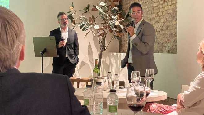 Después habló Carlos Valero, distribuidor desde 2001, que recordó con retranca aquellos tiempos en los que, si uno pedía vino aragonés en un restaurante, lo más probable es que se lo sirvieran en una jarra de barro (con suerte, limpia). Frente a ese panorama, la propuesta de Aylés sonaba a revolución: finca con materia prima de primera, maquinaria puntera y un equipo humano que derrochaba ganas.