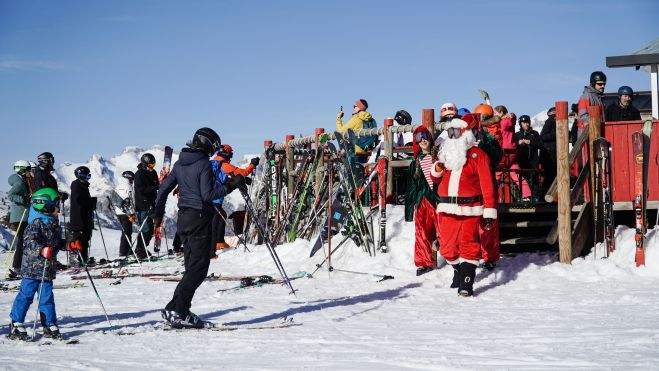 Los dominios esquiables de Cerler y Formigal se han visto gratamente sorprendidos durante el día de hoy por la visita de Papá Noel, que no conforme con repartir regalos enre los esquiadores también ha decidido deslizarse por el precioso manto blanco de las estaciones.