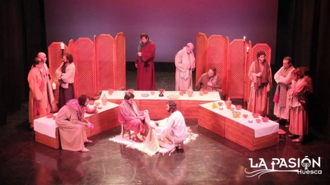 La representación de La Pasión en Salesianos llega a su última semana y, tras las cuatro primeras sesiones, ya se puede afirmar que 2024 va a ser un año de récord, ya que han pasado más de 1.600 espectadores por el Teatro Salesianos para disfrutar de este drama sacro que se viene interpretando, en torno a los últimos días de Jesucristo, desde hace más de setenta años en los que se ha convertido en gran referencia de la Semana Santa oscense.