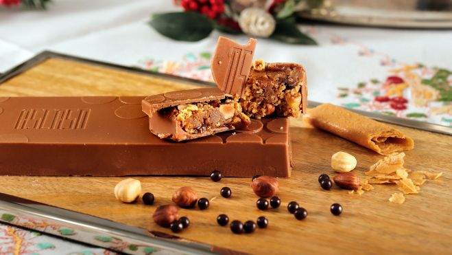 La otra novedad, Crujen, tiene connotaciones más clásicas: su interior está protagonizado por una mezcla de chocolate con leche Jívara (con 40% de cacao), caramelo tradicional, avellanas y perlas crujientes de chocolate negro y trocitos de barquillo; y su exterior está recubierto con chocolate con leche Biskelia (con 34% de cacao). En esta composición, Biskelia aporta un untuoso y voluptuoso toque a caramelo suave y galleta tostada, mientras Jívara propone un intenso sabor a cacao con matices malteados y avainillados. La creación destaca por su crujiente textura, que combina muy bien con la cremosidad del caramelo y la ‘ganache’ de chocolate.