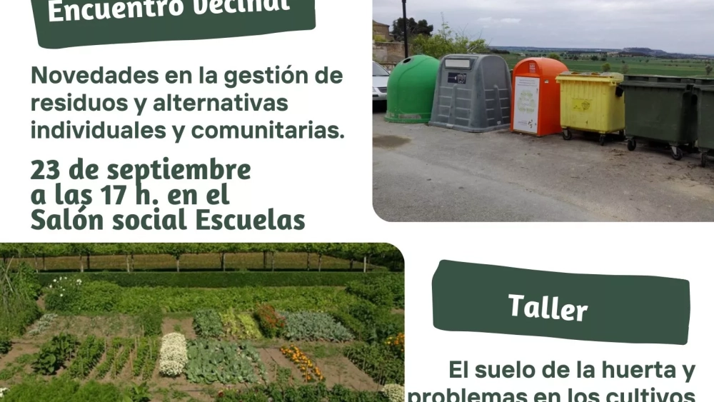 El 23 de septiembre, se tratarán las “Novedades en la gestión de residuos y alternativas individuales y comunitarias”, donde se explicará la nueva legislación en materia de residuos y contaminación de suelos y los retos que conlleva, las posibilidades y alternativas para mejorar y ampliar la selección de los residuos domésticos, dando pasos para que a corto plazo sea una realidad en el municipio y haciendo especial énfasis en el reciclaje de los biorresiduos domésticos.
