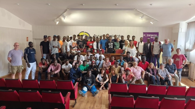 Podemos Aragón ha celebrado en la Casa de Cultura de Sabiñánigo un emotivo encuentro junto a las plataformas Prorrefugiados y Refugiados Pirineos para visibilizar la importancia del apoyo vecinal y de las redes solidarias en la acogida de personas migrantes. El acto ha contado con la participación de Serigne Mbayé, secretario de Antirracismo de Podemos, así como de Elías Martínez y Begoña Martín, de la plataforma local, y de varias personas migrantes que han compartido sus experiencias en primera persona.