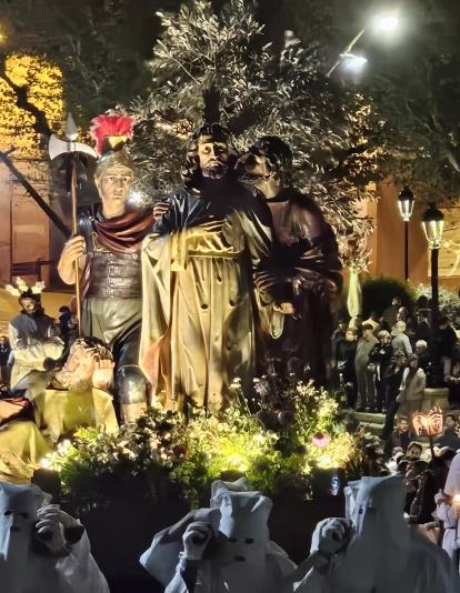 Barbastro ha disfrutado una de las procesiones más esperadas de su Semana Santa: la del Prendimiento, organizada por la Cofradía de Nuestra Señora de la Merced. Centenares de personas acompañaron los pasos del “Prendimiento de Jesús” y “Nuestro Padre Jesús Cautivo” en una noche marcada por la solemnidad, la emoción y dos importantes novedades.