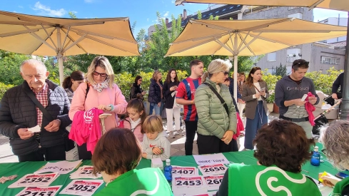 El lugar de convocatoria ha sido la plaza Navarra, donde oscenses acreditados han comenzado a recoger sus camisetas de color rosa y sus dorsales pasadas las 10:00 y volverán, a esta misma hora, el domingo, para asistir a la marcha solidaria.