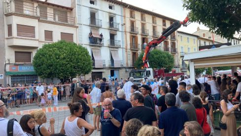 Graus ha disfrutado de una jornada muy animada en torno a la Fiesta de la Longaniza, que ha tenido su momento culminante con el volteo de la parrilla de 25 metros cuadrados con una grúa que sitúa sobre las brasas.