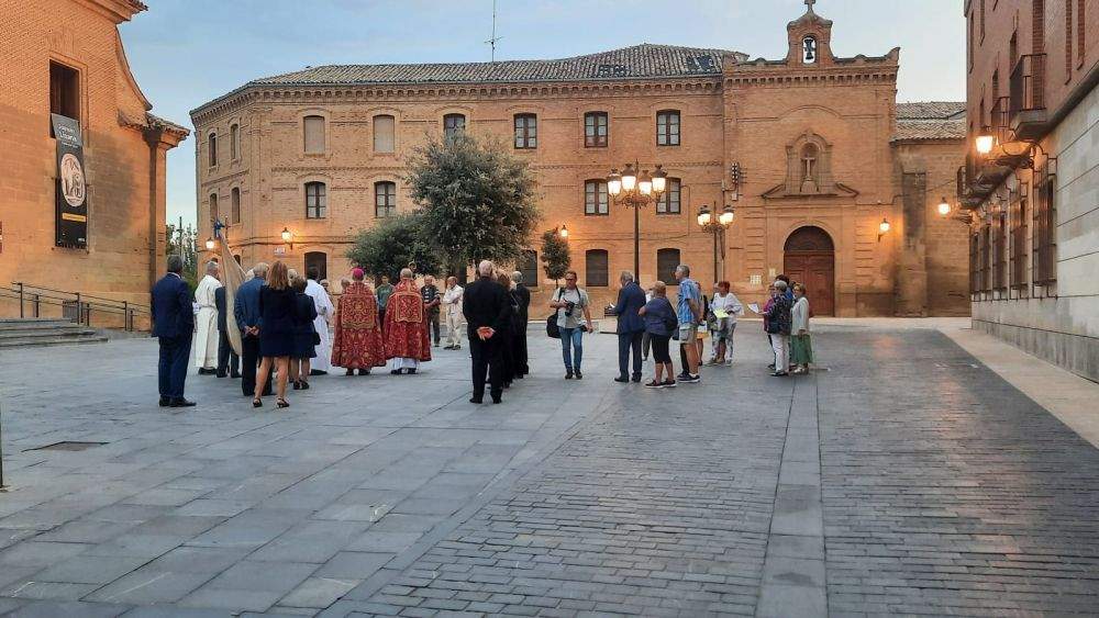 La Catedral de Huesca ha acogido hoy a los peregrinos que se han congregado en la plaza de la Universidad y han trasladado la imagen desde la capilla hasta el altar mayor, donde se ha celebrado la primera eucaristía de la festividad del Santo Cristo de los Milagros de este 12 de septiembre de 2022.