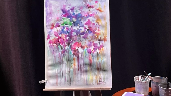 La acuarela de Marian Ruiz es una obra multicolor que habla de la diversidad de lo femenino pero, también, de la unión, del haz de flores únicas que forman un mismo ramillete en la lucha, en la sorodidad, en la ayuda mutua.