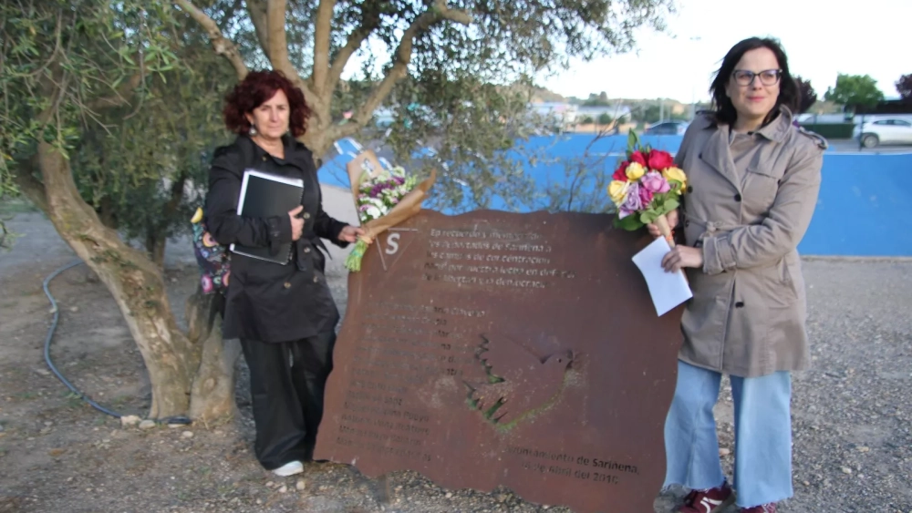 A pesar de ser un día laborable, a pesar del aire que cortaba el rostro, a pesar de todo, una decena de vecinos y vecinas de Sariñena, algunos familiares directos de deportado, se concentraron ante la placa y el olivo que perpetuaban su memoria. Una de las organizadoras fue Cruz Ullod, miembro de la Amical de Mauthausen y familia del deportado Miguel Pueyo Pardina. Cruz fue la encargada de leer el comunicado de la Amical del día. En dicho manifiesto se podía leer que la celebración ese 5 de mayo del Día de Homenaje a los españoles deportados y fallecidos en Mauthausen y en otros campos y a todas las víctimas del nazismo de España, instaurado por el Gobierno de España en 2019, se enmarcaba en el 80 aniversario de la liberación de los campos nazis y el final de la Segunda Guerra Mundial.