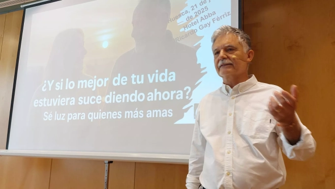 ¿Y si lo mejor de tu vida estuviera sucediendo ahora? Sé luz para quien más amas. La pregunta y la respuesta que se han convertido en hilo conductor del taller del educador y orientador Ricardo Gay Férriz para la Fraternidad Cristiana de Personas con Discapacidad (Frater Huesca) en el Hotel Abba Huesca, donde el aire que ha circulado ajeno a la tórrida mañana oscense ha sido acondicionado para la inspiración.