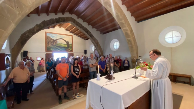 Con el recuerdo permanente de Mariano Bergua, gran benefactor y defensor de la ermita en tiempos complejos frente a tentaciones desmedidas, se congregaban los romeros en torno a un almuerzo que es una tradición. Era la previa a la celebración eucarística a cargo de Fernando Altemir, el párroco de Santo Domingo y San Martín. Homilía en torno a la figura de la Virgen de Jara, al valor de la devoción mariana y a la necesidad de preservar los valores cristianos permanentemente y de manera especial en ocasiones como ésta.