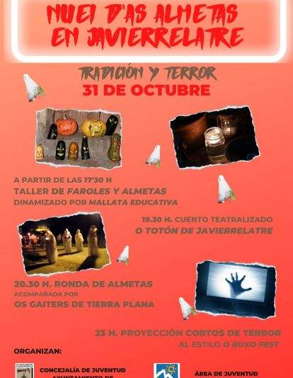 Javierrelatre acoge una jornada dedicada a la tradición aragonesa de A Nuei d’as Almetas, que se celebrará el próximo lunes 31 de octubre, organizada por el Área de Juventud de la Comarca del Alto Gállego, en colaboración con la Concejalía de Juventud del Ayuntamiento de Caldearenas.