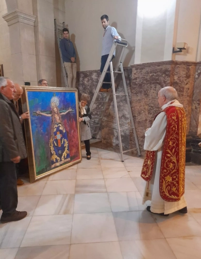 Un cuadro del Santo Cristo de los Milagros cuya autoría es del reputado pintor oscense Luis Toro ya luce en la Basílica de San Lorenzo, gentileza de la cofradía que aúna ambos nombres.