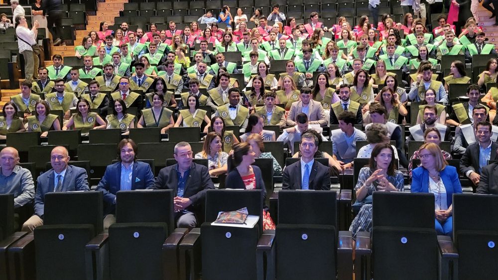 Carlos Plana, que ha comenzado su intervención destacando el trabajo del equipo anterior, liderado durante ocho años por Germán Vicente, les ha recordado que ahora pueden comenzar a trabajar o seguir especializándose como docentes o investigadores. "Esta decisión necesita, de nuevo, una sosegada reflexión" y, con cercanía y emoción, se ha dirigido a los progenitores para confesarles que su hija Carmen se acaba de graduar como enfermera y, por lo tanto, pronto le iba a tocar sentarse en el patio de butacas "y experimentar la felicidad" de estos momentos.