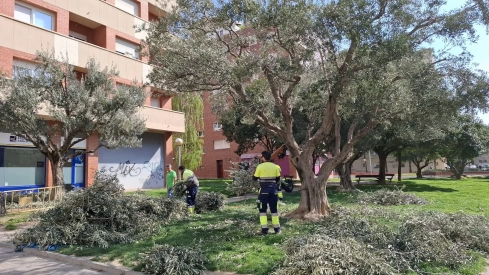 Las brigadas de parques y jardines del Ayuntamiento de Huesca están llevando a cabo a lo largo de esta semana la poda de los olivos, cuyas ramas serán distribuidas posteriormente entre las parroquias y conventos de Huesca para ser bendecidas el próximo Domingo de Ramos.