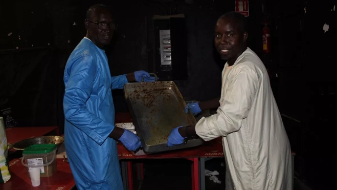 La celebración combina momentos de oración con otros festivos. Las mujeres preparan el día de antes la comida tradicional, thieboudieng, que consiste en arroz con pescado y los hombres se encargan de preparar los corderos, que en este caso asan en la panadería de Lanaja. El día de la celebración invitan a todos a compartir esta fecha tan importante junto a ellos. “Es una fiesta muy importante para Senegal, la más importante, pero a la celebración invitamos a todo el que quiera acompañarnos. No solo estamos senegaleses, vienen amigos de otros países y nos gustaría contar también con la presencia de vecinos y vecinas oscenses. Cuando llevamos tantos años celebrando el Magal en Huesca sería una pena que se perdiera esta tradición”.