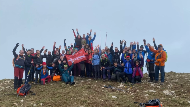 El segundo de los 12 Retos, 12 Cimas con destino en el Pico Naviella en un recorrido circular con partida y llegada a Bentué de Rasal, ha tenido su simbolismo por el estreno de un sendero en la bajada que limpiaron con otros voluntarios los miembros del Club Javieres, promotores de la iniciativa con la Comarca de La Hoya de Huesca.